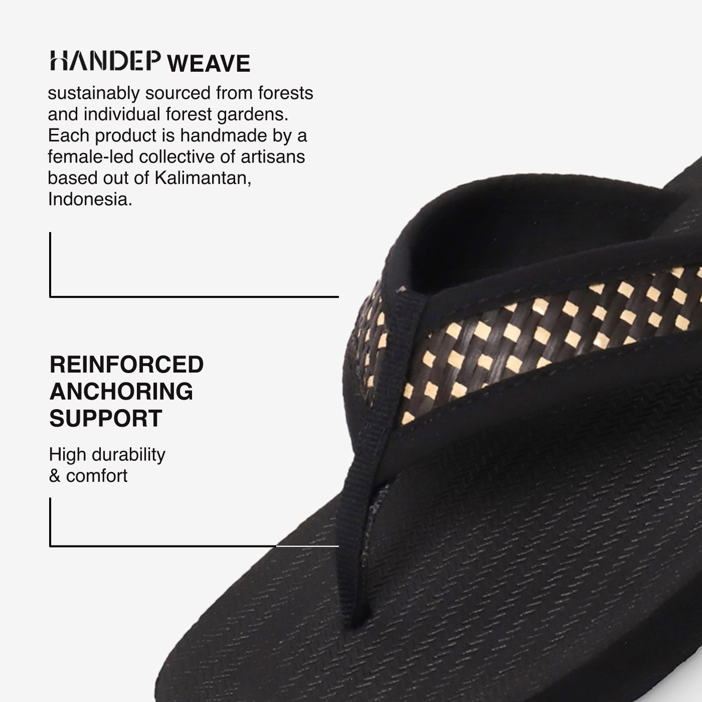 In partnership with Handep, a social enterprise based in Central Kalimantan, Indonesia, these flip flops support local women weavers and smallholder farmers. By choosing the Handep Flip Flop, you’re directly supporting rural communities and responsible production methods.